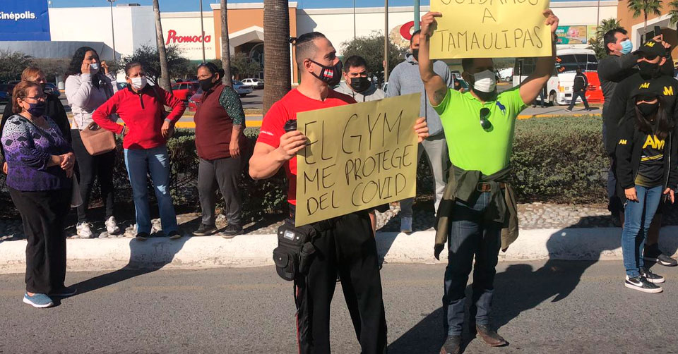 Exigen con protesta apertura de gimnasios en Tamaulipas