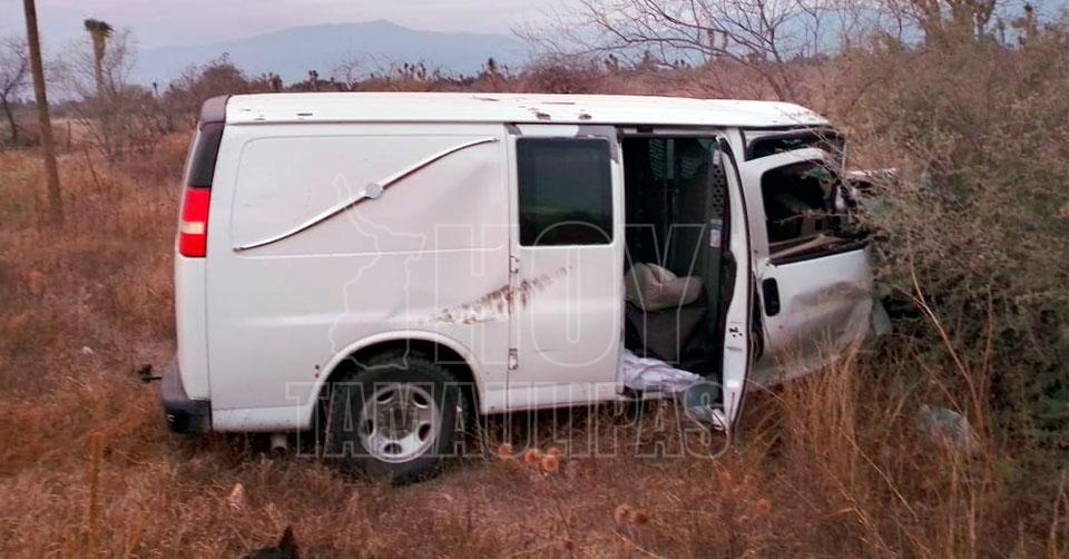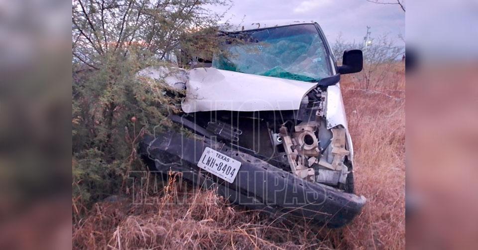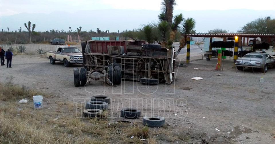 Jaumave, Tamaulipas. - Un choque y volcadura entre un camión materialista y una carroza registrado esta mañana, dejó como saldo a dos personas lesionadas, en el kilómetro 120 de la carretera federal 101 tramo Tula-Victoria.