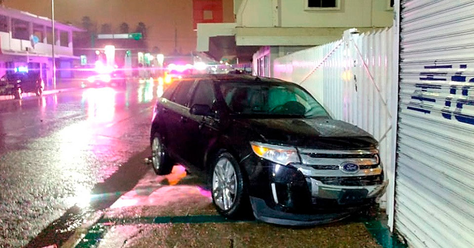 Tras el impacto, la camioneta Lincoln se proyectó hacia una de las esquinas, atropelló al indigente y luego chocó contra un negocio, al que le causó daños en los ventanales.