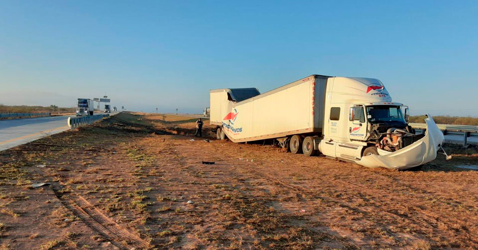 Por poco se mata trailero en accidente cerca de Nuevo Laredo