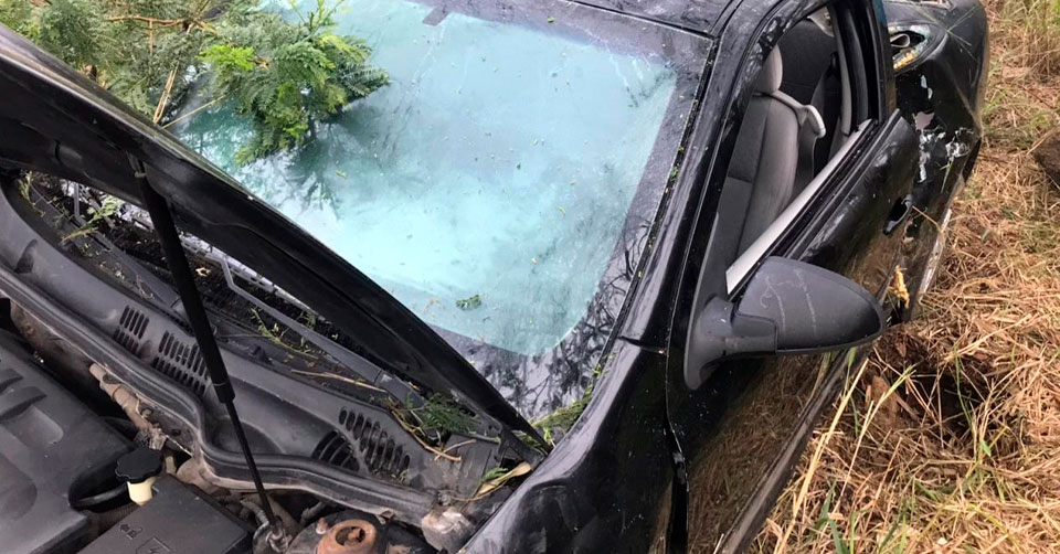 Altamira, Tamaulipas. - Un vehículo compacto terminó entre los matorrales y con daños severos al salir a gran velocidad del Corredor Urbano "Luis Donaldo Colosio" en Altamira.
