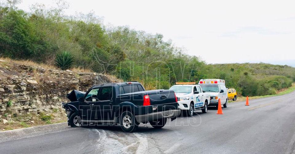 Villa de Casas, Tamaulipas. - Un conductor de 30 años de edad resultó lesionado luego estrellarse contra el talud de la sierra en la carretera Villa de Casas - Soto la Marina, tras pincharse un neumático y perder el control de la camioneta que conducía.