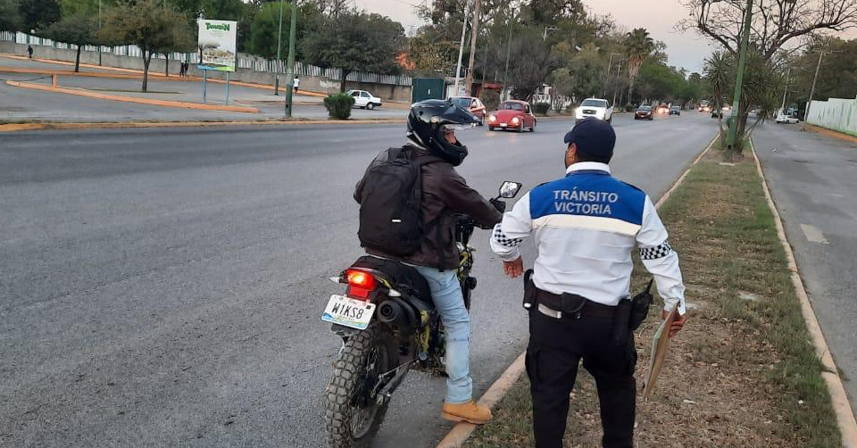 Ciudad Victoria, Tamaulipas. - La Dirección de Tránsito de Victoria inició en coordinación con la Policía Estatal un operativo denominado “Moto Segura”, en el que se orienta a los motociclistas en el uso correcto del casco protector y la prevención de accidentes.