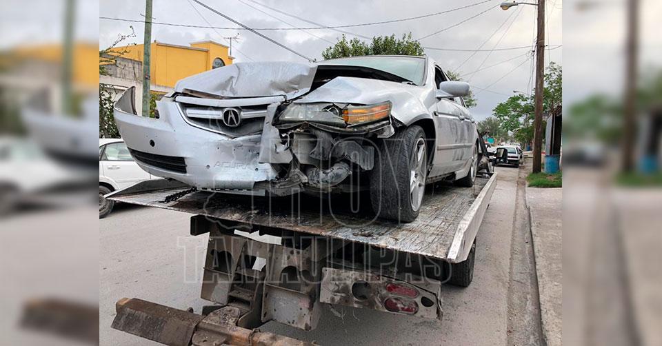 Matamoros, Tamaulipas. - Un amanecido joven del Fraccionamiento Palmares que andaba bajo los efectos del alcohol o de alguna droga, provocó un fuerte choque en la colonia Sección 16, donde lesionó a madre e hijo y después trató de huir.