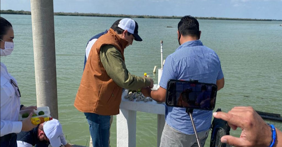 El Gobernador García Cabeza de Vaca realizó un recorrido en las granjas de ostión en el Poblado La Pesca, donde supervisó los últimos detalles para el inicio de operaciones del parque, así como la calidad de los moluscos producidos