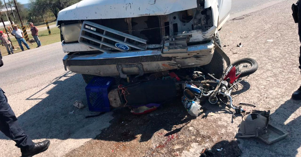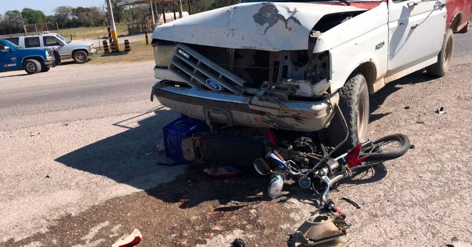 Menores resultan graves al chocar moto contra camioneta en Llera