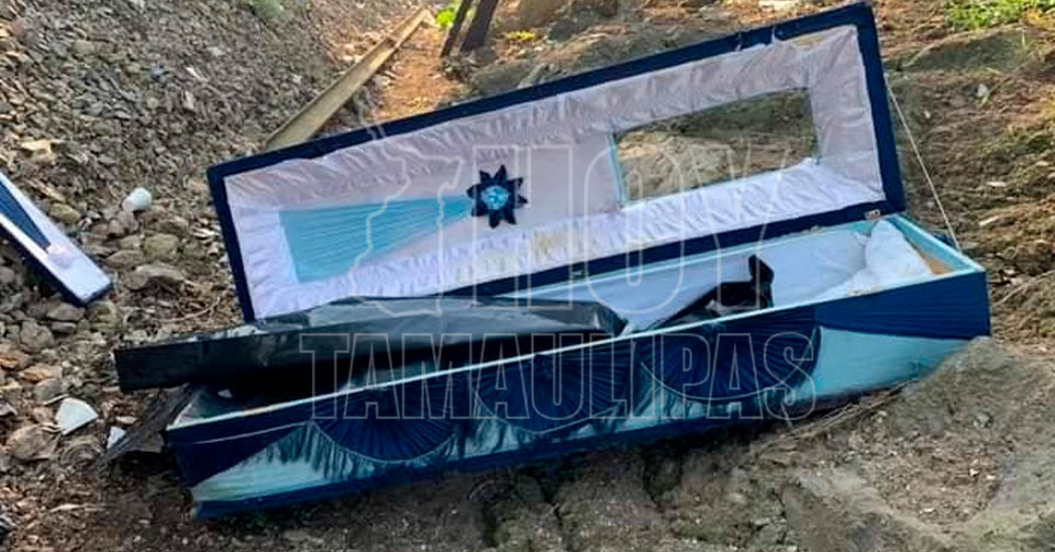 Los primeros reportes policiales confirmaron que en el féretro había prendas de mujer y rastros de sangre, por lo que fue necesaria la intervención de agentes ministeriales en el lugar.
