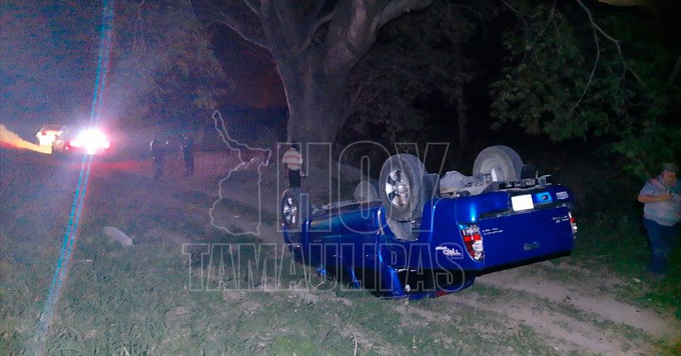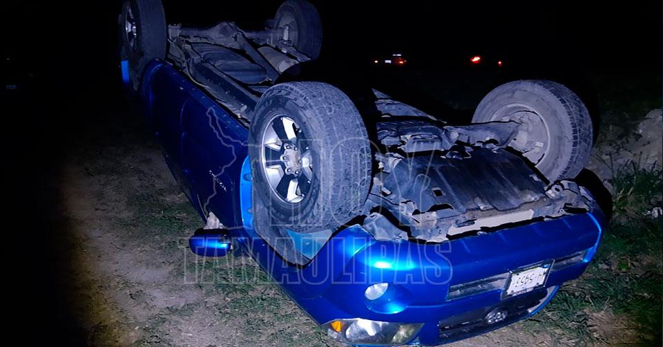 Gómez Farías, Tamaulipas. - Una camioneta Toyota tipo Tacoma en color azul, terminó volcada esta noche, luego que su conductor perdiera el control, pese a lo aparatoso del incidente.