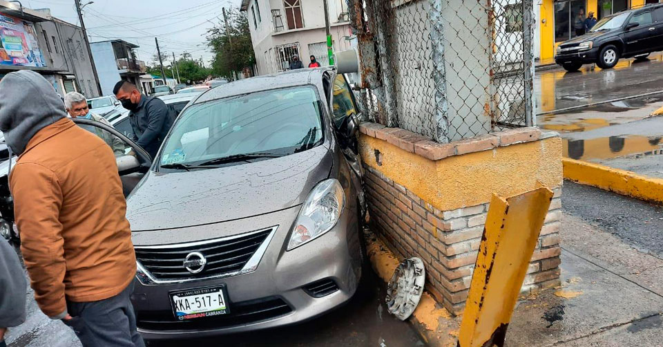 Matamoros, Tamaulipas. - Un hombre de la tercera edad a bordo de su automóvil provocó un fuerte choque al cruzar sin precaución una transitada calle de Matamoros, causando ser chocado por un vehículo en venta que conducía un joven.