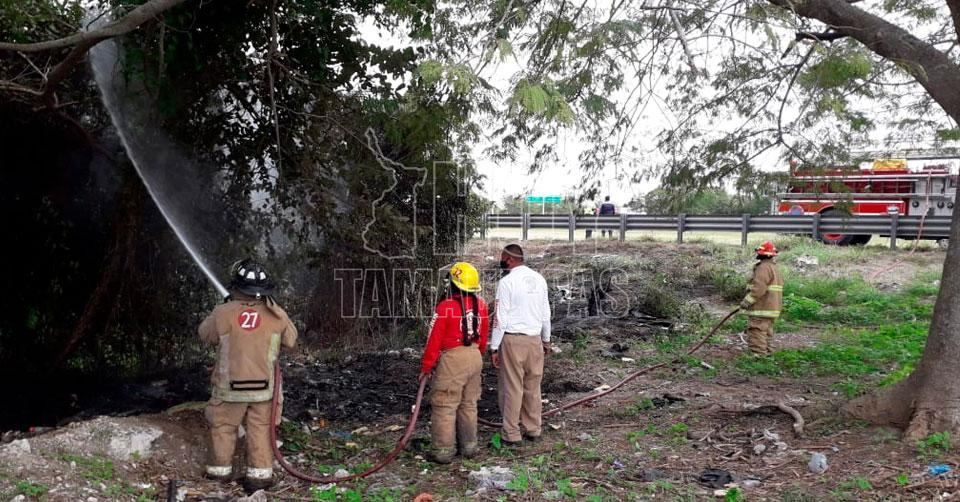 Los Bomberos recibieron el reporte a las 14:10 horas, dirigiéndose al sitio ubicado frente al sector Moscú, en Tampico, para sofocar las llamas que rápido estaban avanzando en un área verde llena de basura y maleza.