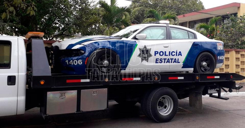 Tampico, Tamaulipas. - Una patrulla de la Policía Estatal Acreditable terminó con severos daños, luego de ser impactada por un vehículo particular tras pasarse el alto obligatorio en el cruce de las calles Cerro Azul y Francita de la colonia Petrolera en Tampico.