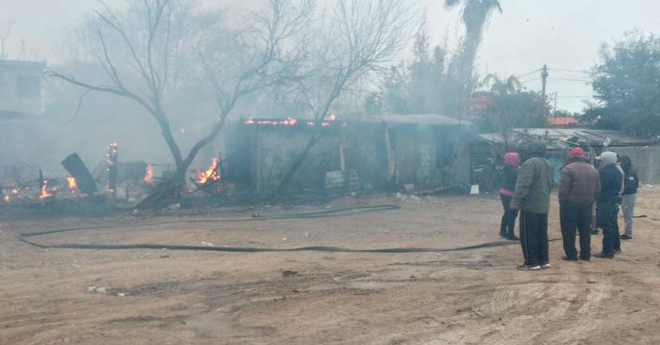 El dantesco incendio inició en la vivienda 110 de la calle El Estero, cerca de la Carretera a Piedras Negras, hasta donde llegaron elementos de Protección Civil y Bomberos.