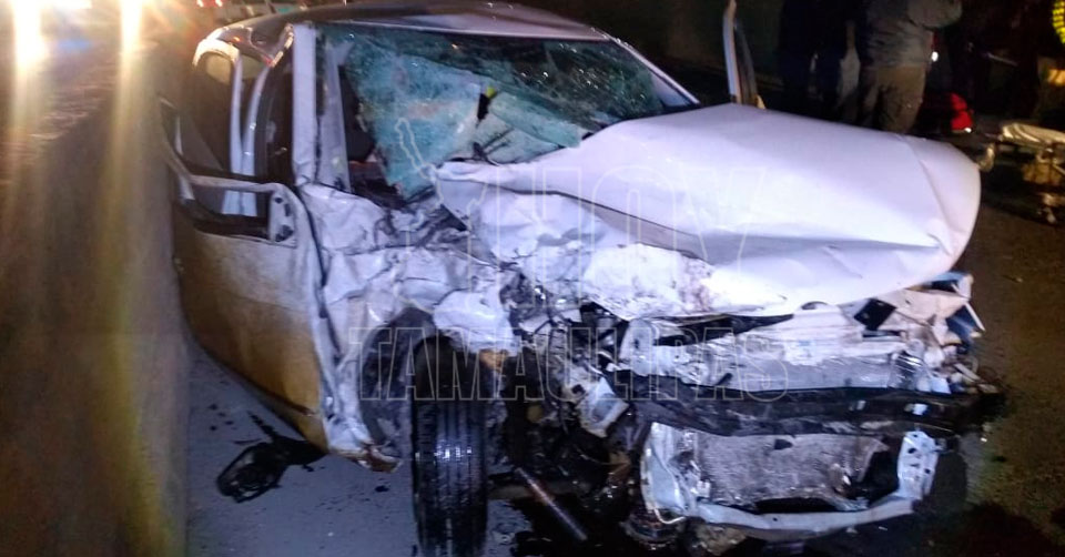 Reynosa, Tamaulipas. – Un fuerte encontronazo dejó como saldo al menos cuatro personas lesionadas esta madrugada, en el bulevar Hidalgo, a la altura de la calle Fuente de Diana, en la colonia Las Fuentes.
