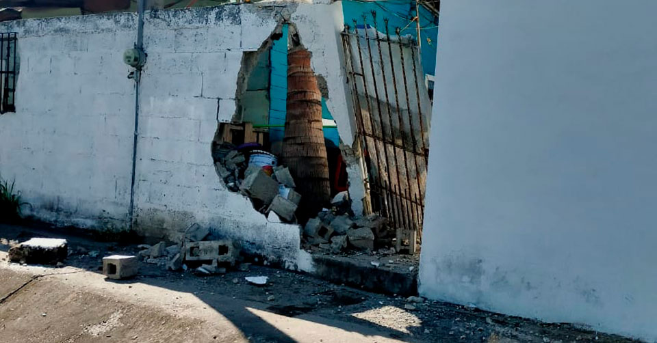 La camioneta fuera de control cayó al canal pluvial y se impactó contra la barda de un domicilio particular, causándole severos daños.