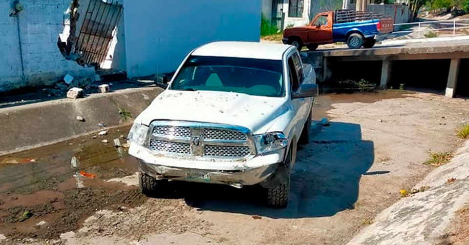 Abandonan camioneta tras caer a dren pluvial en Tampico