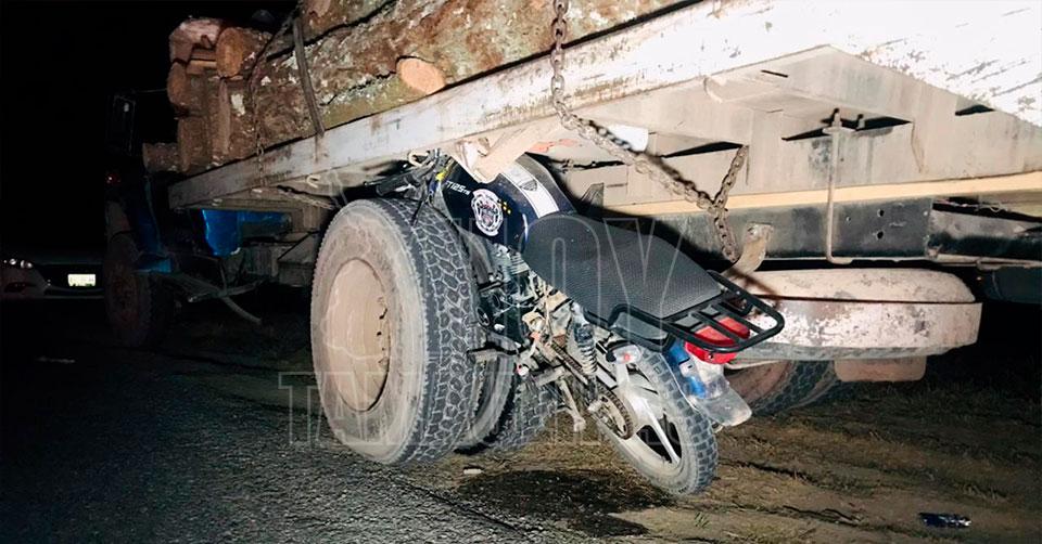 Ciudad Victoria, Tamaulipas. - Un joven motociclista perdió la vida esta noche luego de estrellarse contra un camión que transportaba madera, en el kilómetro 14 de la carretera Interejidal.