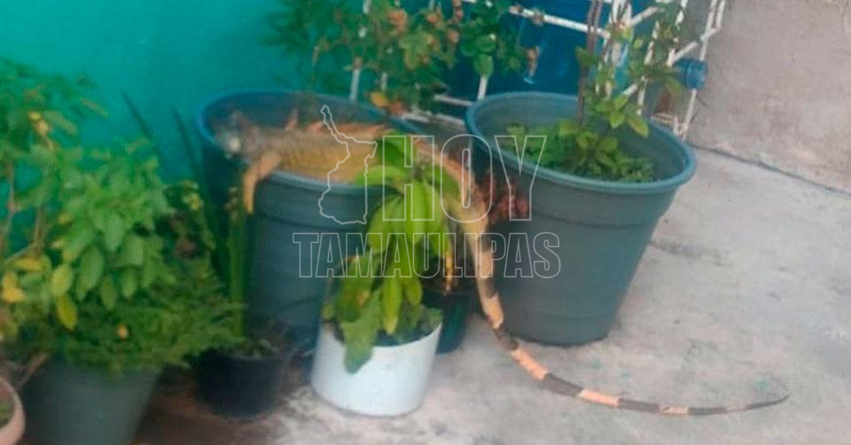 Ciudad Madero, Tamaulipas. - Una iguana causó pánico en moradores de una vivienda de Ciudad Madero, luego de que se internó en el patio y por eso llamaron a Bomberos para su captura.