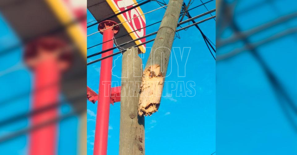 Tampico, Tamaulipas. - Un tráiler de enormes dimensiones tumbó un poste de madera propiedad de Teléfonos de México (Telmex), dejando sin el servicio de telefonía e internet a un amplio sector de Tampico, Tamaulipas.