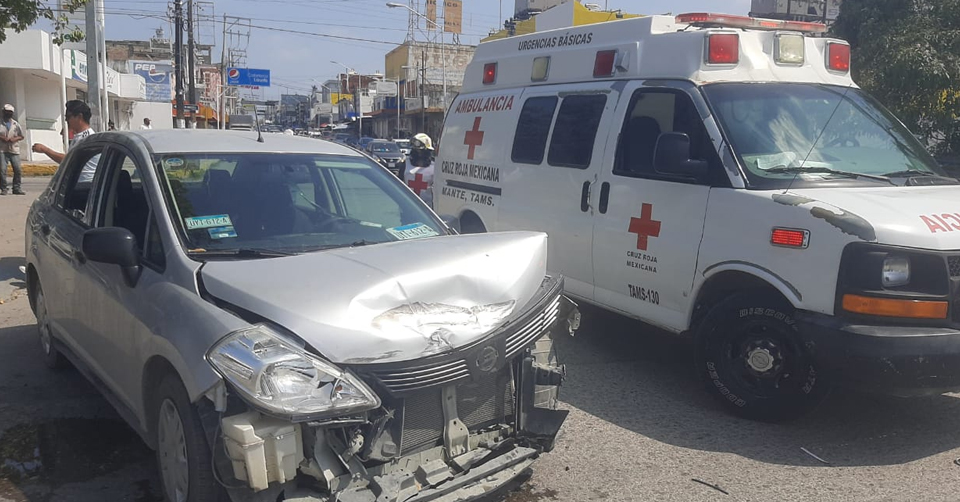 El Mante, Tamaulipas. - Un fuerte encontronazo en El Mante dejó por lo menos una persona lesionada que fue auxiliada por socorristas y trasladada a un hospital, tránsito municipal tomó conocimiento.