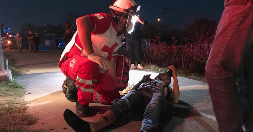 Matamoros, Tamaulipas.- Un motociclista salió lesionado en accidente ocurrido durante la noche en la Avenida Virgilio Garza Ruiz a la entrada del Fraccionamiento Hacienda del Puente en Matamoros.