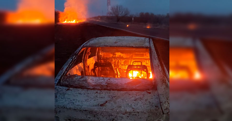 Díaz Ordaz, Tamaulipas. - Un vehículo en llamas fue encontrado abandonado esta mañana en el kilómetro 138 de la carretera La Ribereña, informaron autoridades de Protección Civil.