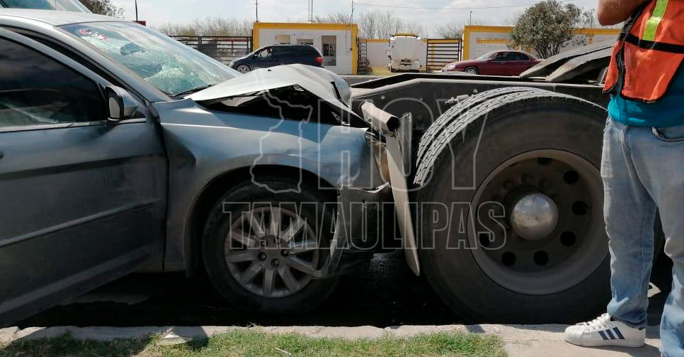 Matamoros, Tamaulipas. -Dos jovencitas, que se amanecieron tomando con una amiga, se accidentaron al mediodía de este sábado en la Avenida Lauro Villar donde se impactaron contra la parte trasera de un tráiler.