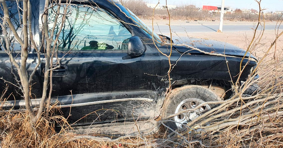 Nuevo Laredo, Tamaulipas. ─ Los conductores de una camioneta y un automóvil se vieron involucrados en un aparatoso accidente vial registrado en el Fraccionamiento El Progreso, al poniente de Nuevo Laredo, luego de que uno de ellos burló la señal de alto.