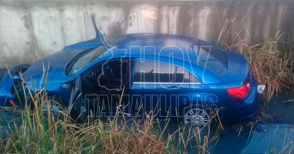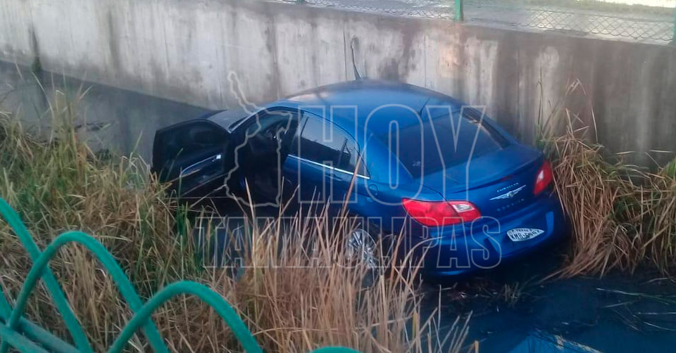 Matamoros, Tamaulipas. - Un vehículo tipo Chrysler amaneció en el interior del canal de aguas negras de la Avenida del Niño del municipio de Matamoros.