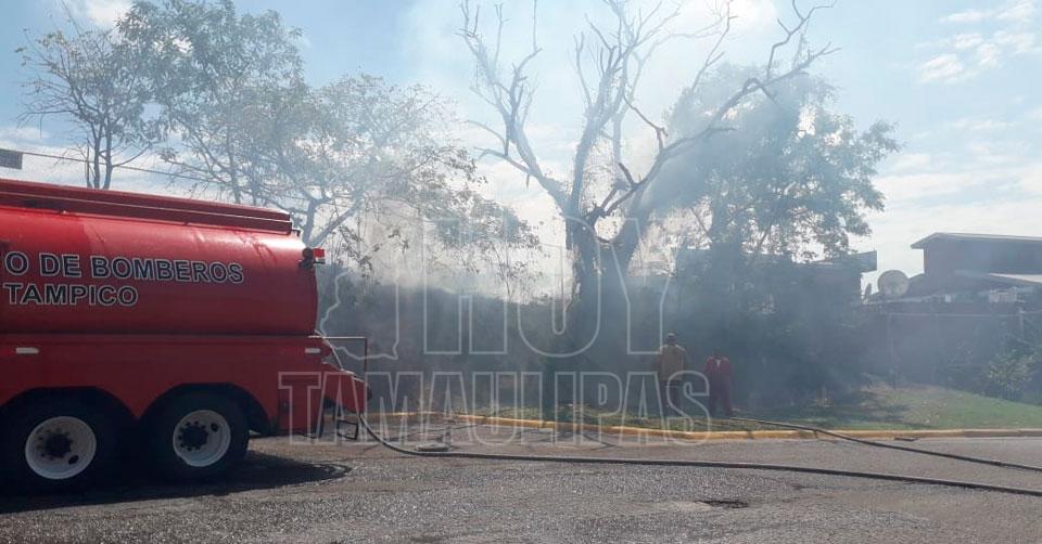 Se registra incendio a un costado de Walmart Hidalgo en Tampico