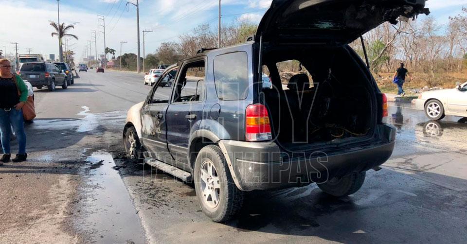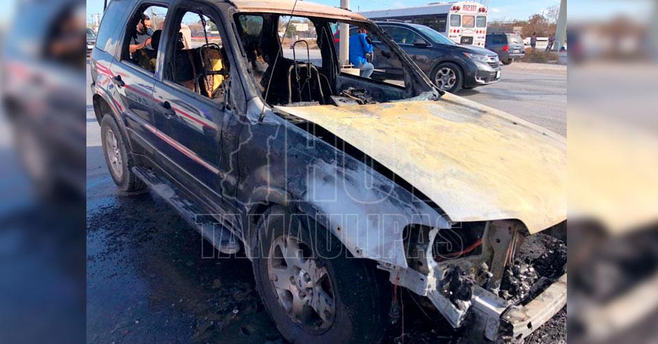 La unidad que ardió es una Ford Escape modelo 2004, propiedad de Rosalba García de la colonia 14 de Febrero en Matamoros.