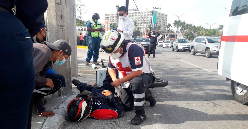 Tampico, Tamaulipas. - Un repartidor de una farmacia en Tampico quedó tendido en el asfalto luego de ser embestido por un vehículo compacto que le invadió el carril por donde circulaba.