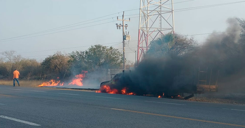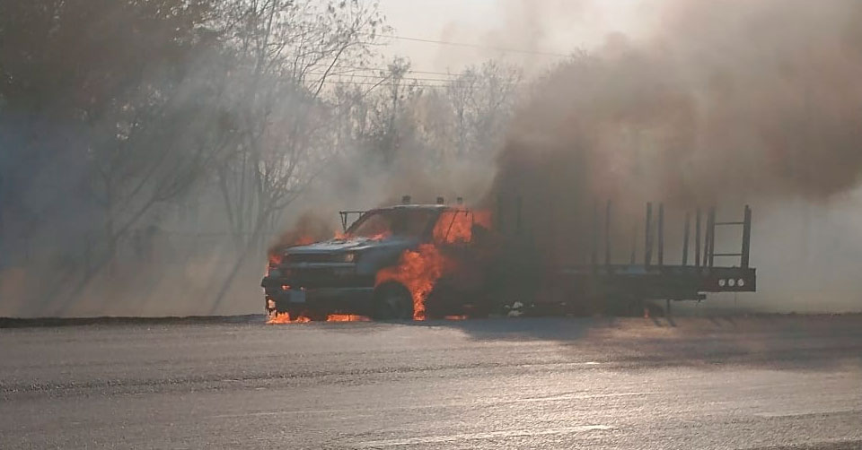 Incendio de camioneta pone en jaque a PC de Hidalgo, Tamaulipas