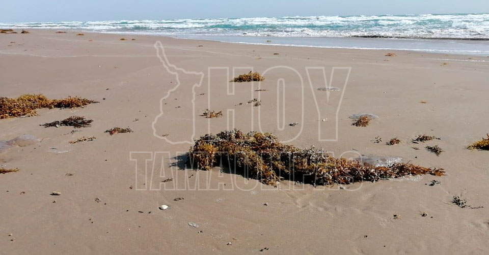 Ciudad Madero, Tamaulipas. - La llegada de sargazo acompañado de una gran cantidad de aguas malas, se registró a lo largo de la orilla de la Playa Miramar en Madero, originado por el viento, informó la regidora presidenta de la Comisión de Ecología, Nury Romero Santiago.