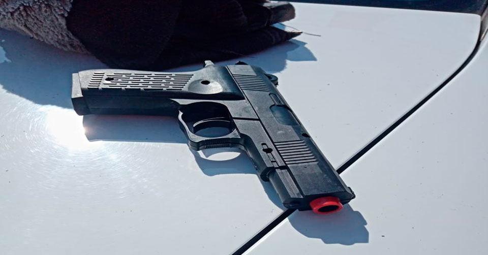 Al momento de ser detenido, el sujeto abordado portaba un arma corta de juguete con la que planeaba asaltar los negocios.