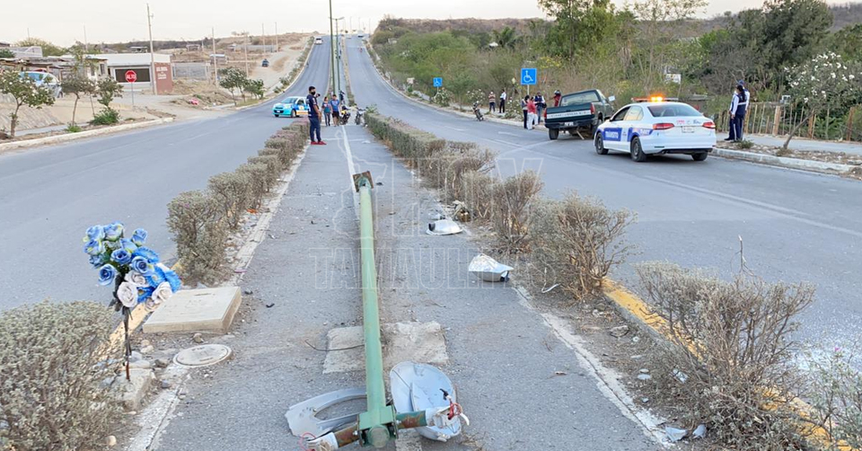 Ebrio conductor casi se mata al chocar con luminaria en Victoria; fue detenido