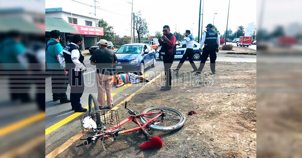 Ciudad Victoria, Tamaulipas. - Un hombre que se desplazaba a bordo de una bicicleta fue arrollado frente a SuBodega de la colonia Vista Hermosa de Ciudad Victoria por el conductor de un auto Volkswagen Vento, originando una herida en la cabeza del ciclista que le hizo perder una gran cantidad de sangre.