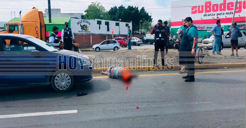 Ciudad Victoria, Tamaulipas. – Un hombre de aproximadamente 50 años de edad murió cuando era trasladado a bordo de una ambulancia al Hospital General, luego de ser brutalmente arrollado en la Avenida de La Unidad, a unos metros de la Escuela Normal Superior.