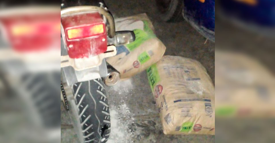 Tampico, Tamaulipas. - Dos sujetos a bordo de una motocicleta fueron capturados por Veladores del Sur de Tamaulipas, luego de que llevaban dos bultos de cemento que habían robado de una obra en donde laboraban.