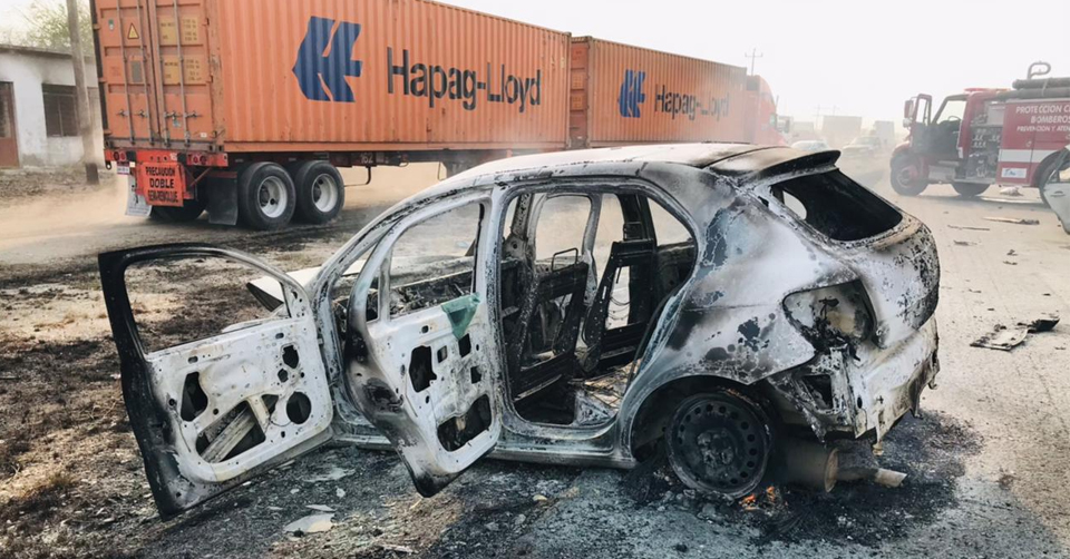 Encontronazo con incendio deja cinco lesionados en la Victoria-Monterrey