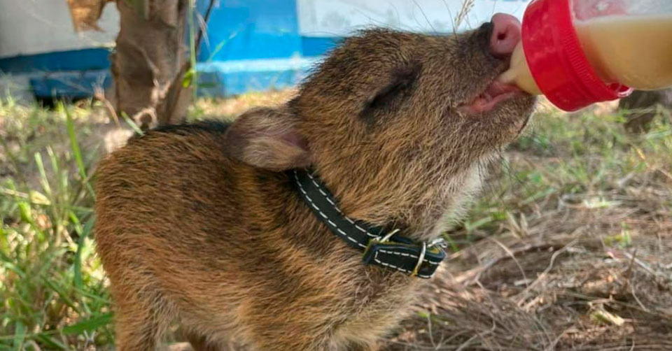"Nuestro nuevo integrante del centro de rescate Pumba, es una cría lactante de pecarí de collar que fue rescatada tras haber muerto su madre en manos de un cazador", se explicó.