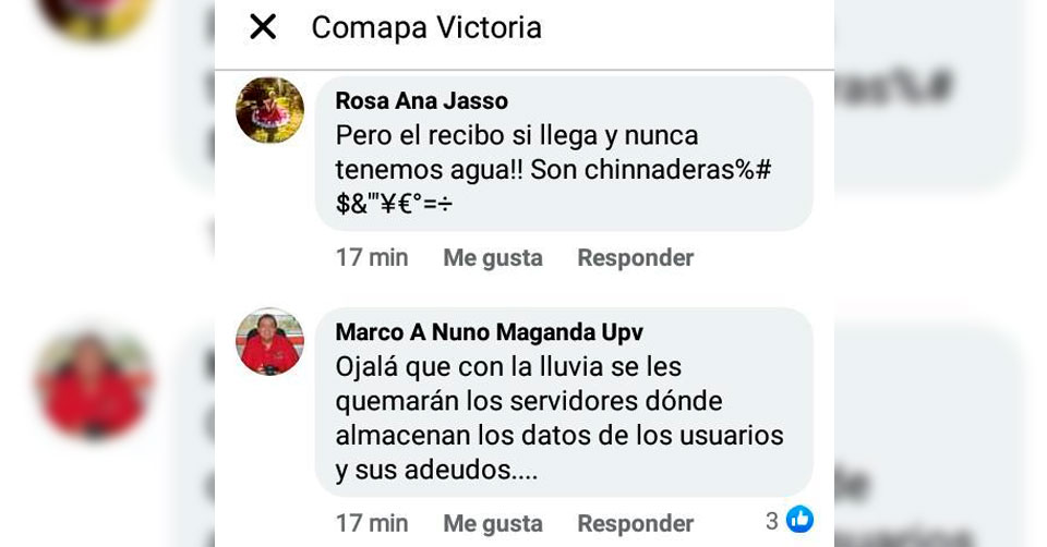 El anuncio de la falla provocó cientos de comentarios sarcásticos como el del usuario Vero “A” que escribió “con luz o sin luz, no tenemos agua”, o el de Alberto “H” que reclamó, “de casualidad cuando llueve no se daña la impresora de los recibos, nunca veo que se descomponga”