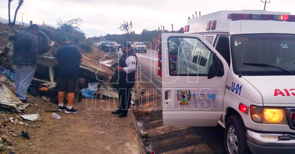 Tula, Tamaulipas. - Un conductor resultó lesionado de gravedad luego de volcar el vehículo que conducía tras estrellarse contra una camioneta, en el kilómetro 70 de la carretera federal 101 tramo Tula-Victoria.