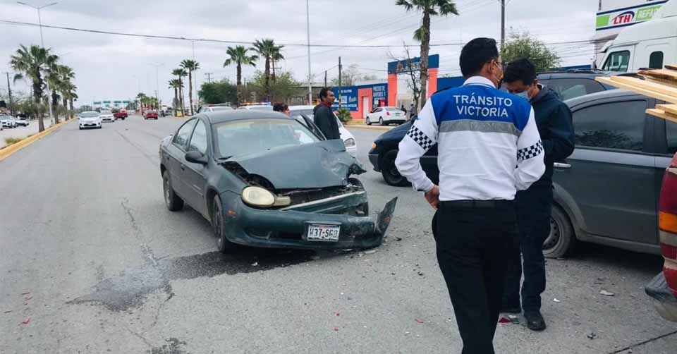 Ciudad Victoria, Tamaulipas. - Un distraído conductor provocó un accidente múltiple esta tarde y dejó como saldo cuantiosos daños materiales en la Avenida José Suleiman y calle Artículo 16 de Ciudad Victoria.