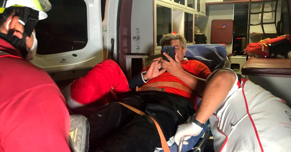 Antes de ser trasladado le fue practicado el examen de alcoholemia resultando positivo y como presunto responsable del accidente, en el que se vio involucrado un automóvil Nissan Sentra.