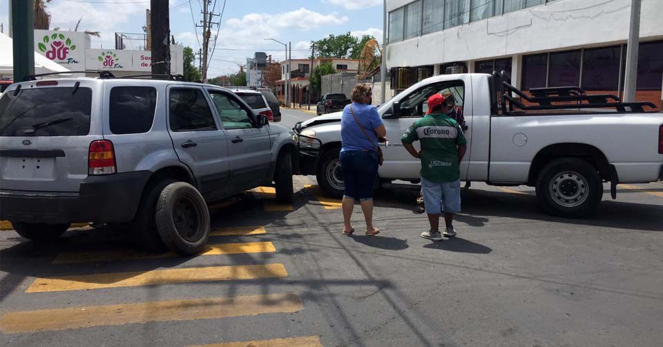 Un conductor que omitió la luz roja se impactó contra una camioneta en el crucero de la Avenida Jesús Carranza y la calle Maclovio Herrera
