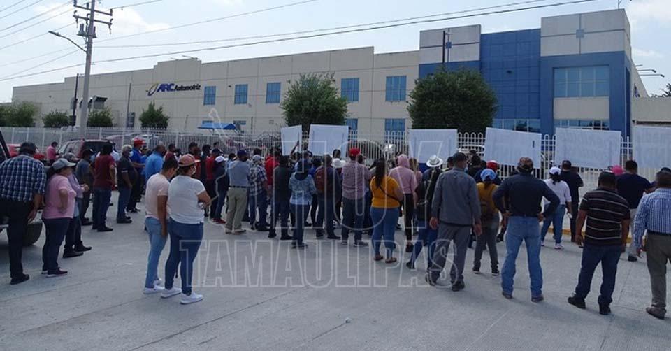 Reynosa, Tamaulipas. - Trabajadores de la empresa maquiladora ARC Automotriz realizaron una manifestación en demanda de un incremento salarial del15 por ciento, y advierten que podrían estallar en huelga si no les cumplen sus demandas.