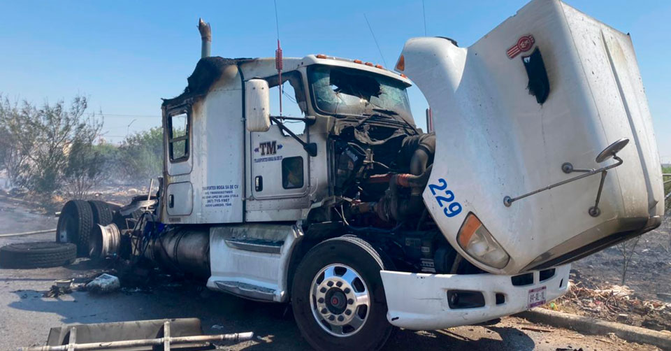 Alcanza fuego de zacatal un tráiler en Nuevo Laredo y lo destruye