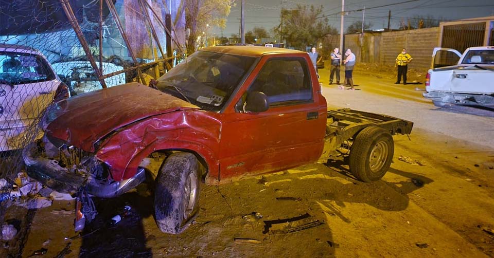 Nuevo Laredo, Tamaulipas.─ Un conductor estrelló su camioneta contra tres vehículos estacionados en calles de la colonia Pancho Villa, provocando severos daños materiales.