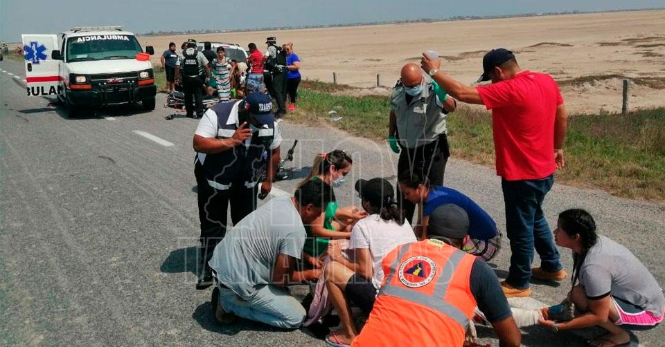 Matamoros, Tamaulipas. - Dos adolescentes resultaron gravemente lesionados luego que fueron impactados por un vehículo cuando venían de la playa Bagdad a bordo de una motocicleta.