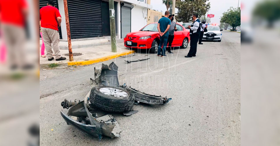 Al llegar a un reductor de velocidad que se encuentra a la altura de la calle Sierra de San Carlos del Fraccionamiento Villarreal, la conductora del Peugeot realizó una maniobra de frenado y el automóvil no se detuvo, lo que ocasionó que al brincar el "tope" el vehículo salió proyectado a su extrema derecha y se impactó contra el costado de un automóvil marca Mazda color rojo que se encontraba debidamente estacionado.
